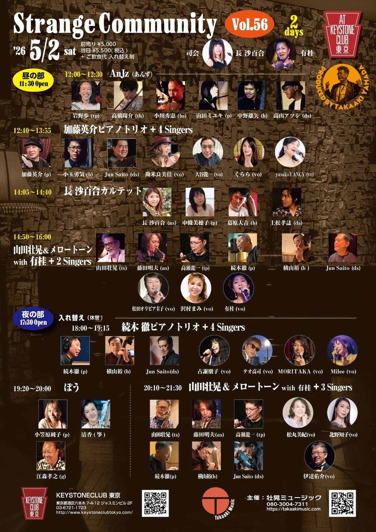 第56回を迎える「Strange Community」!2日間にわたる活気ひしめく音楽祭の1日目は、KEYSTONE CLUB 東京にて開催されます。ジャンルの垣根を越えた多彩なアーティストたちの熱いセッションをぜひお楽しみください!